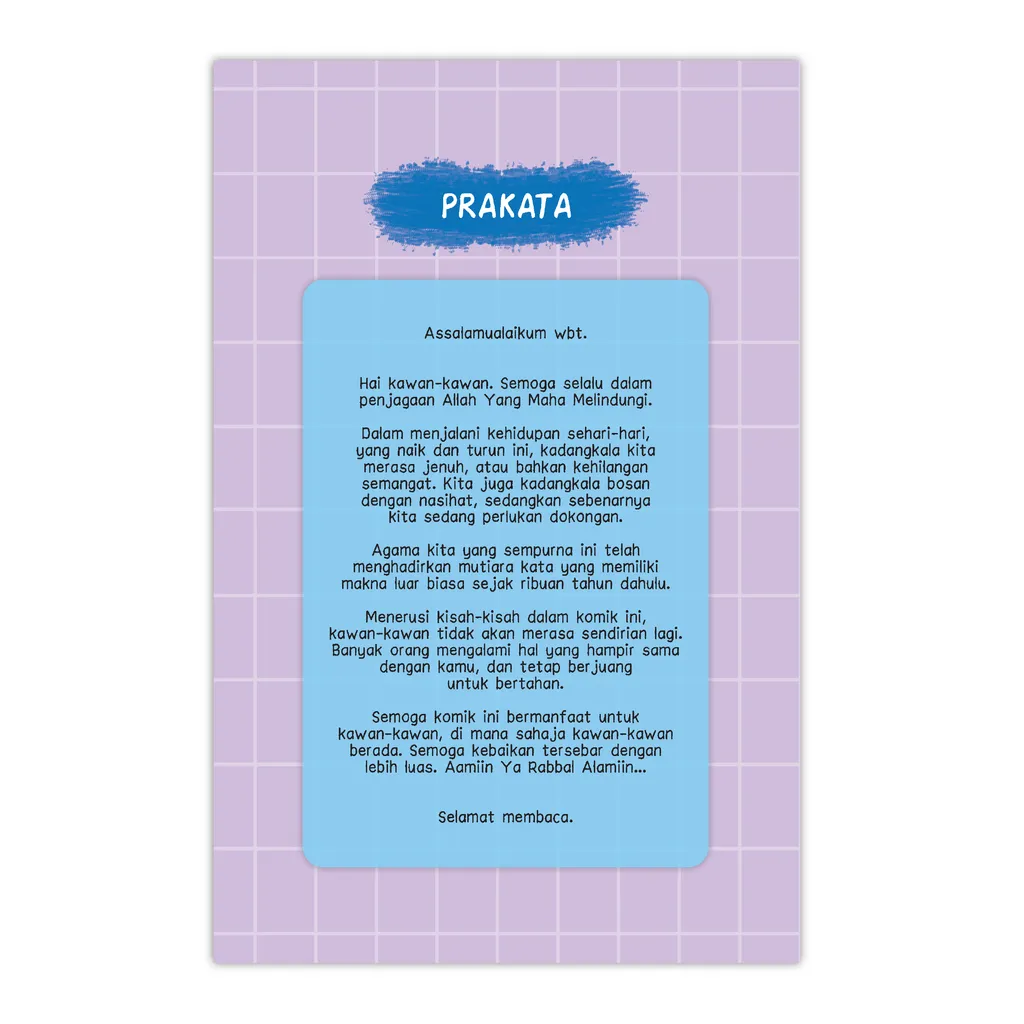 Agama kita yang sempurna ini telah menghadirkan Mutiara Kata yang memiliki makna luar biasa. Kata-kata yang indah tersebut mampu menginspirasi dan memberi semangat kepada banyak orang. Komik ini menjelaskan makna Mahfuzhat atau Mutiara Kata Islam dalam kehidupan seharian dengan pendekatan yang mudah dipahami dan relevan bagi pembaca segala usia. Melalui ilustrasi yang menarik dan narasi yang kuat, setiap halaman mengajak pembaca untuk merenungkan nilai-nilai spiritual dan praktis yang tertanam dalam setiap kata mutiara. Karya ini dirancang untuk menjadi panduan harian yang mengingatkan kita tentang kebijaksanaan Islam dan penerapannya dalam menghadapi tantangan kehidupan modern. Sempurna sebagai hadiah bermakna atau bacaan pribadi, komik ini membawa pesan universal tentang kebaikan, kesabaran, dan kepercayaan kepada Allah. Semoga komik ini bermanfaat untuk kawan-kawan, di mana sahaja kawan-kawan berada. Semoga kebaikan tersebar dengan lebih luas. Aamiin Ya Rabbal Alamiin.